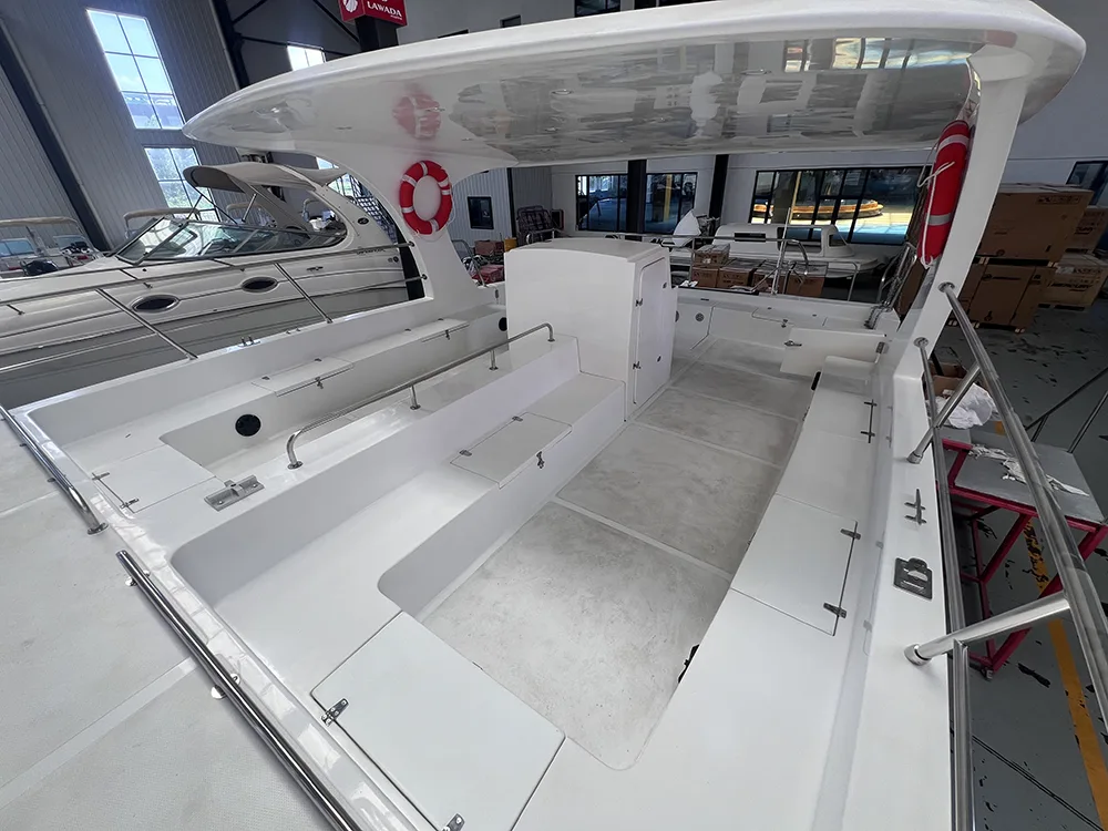 The Lawada®30ft Catamaran komersial mlaku kanthi lancar, aman lan dipercaya. Kacepetan rata-rata rata-rata 15km / H, cocog kanggo wong-wong sing apik, yaiku proyek pangopènan, cocog kanggo kabeh wong turis sing bisa ditindakake. Biaya murah, penghasilan dhuwur.