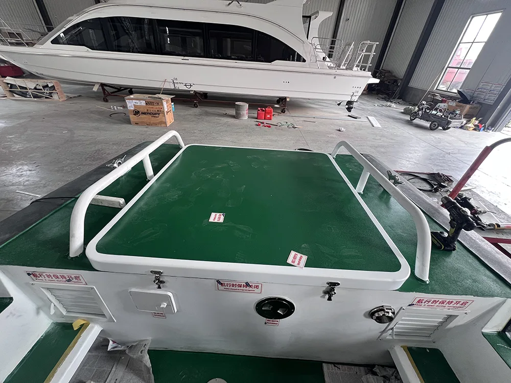 Lambung digawe saka aluminium 5083-H116, kanthi kekuatan dhuwur lan tahan karat sing apik. Dilengkapi padhet EVA kanthi benteng poliurea (kanggo nambah proteksi dampak) lan pegangan tangan stainless steel 316 (kanggo njamin daya tahan lan safety),